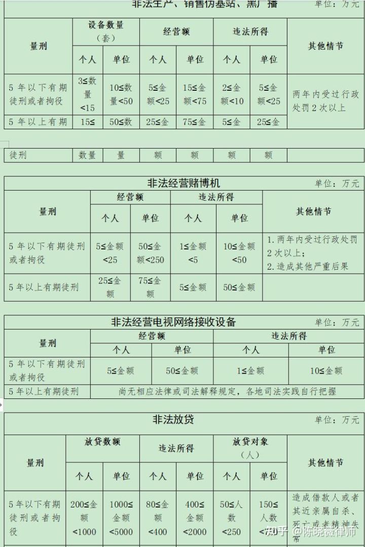 为了回答清楚你的问题,陈晓薇律师团队特地整理出来一张量刑表: